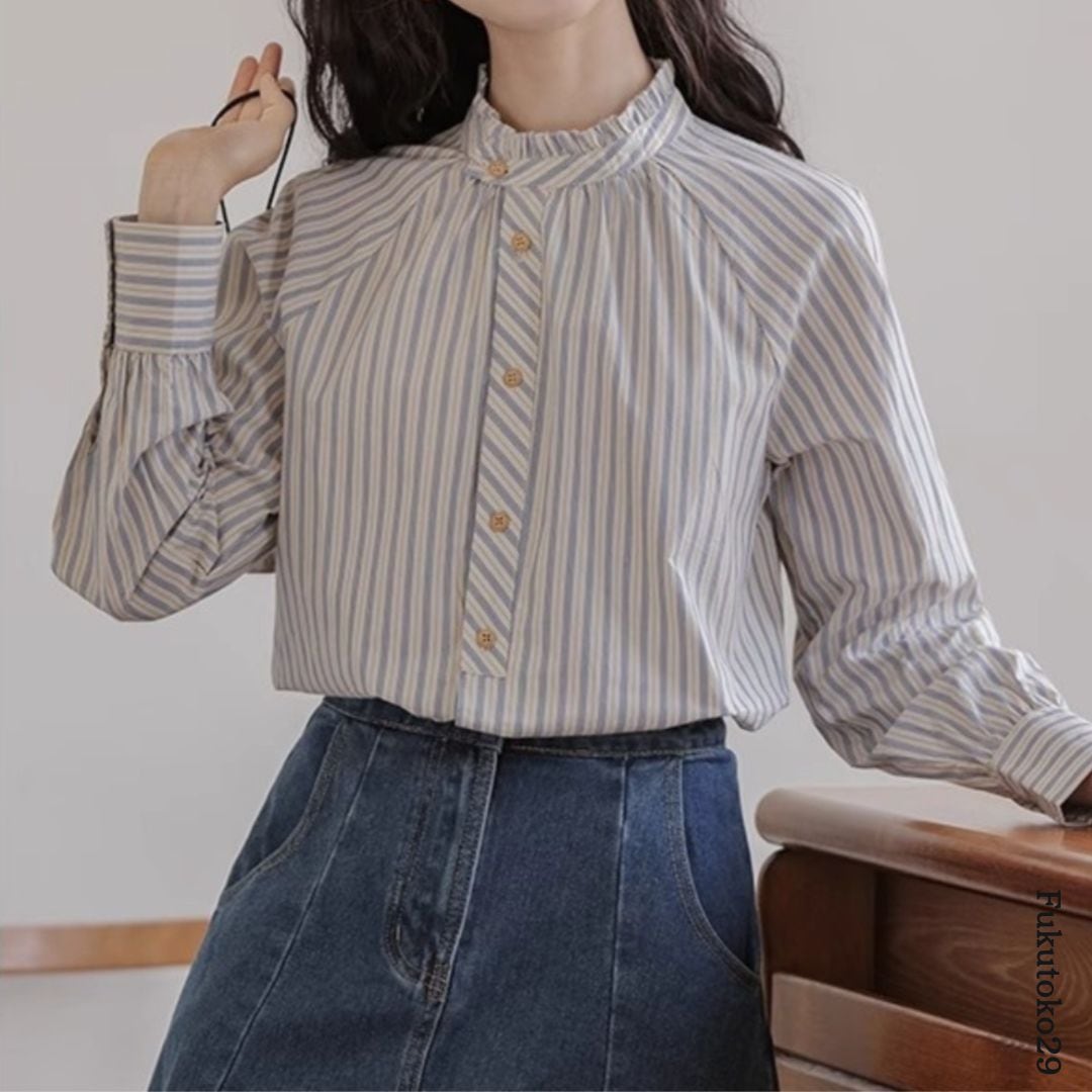 スタンドカラーフリルシャツ F3379