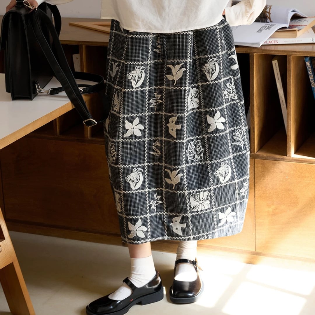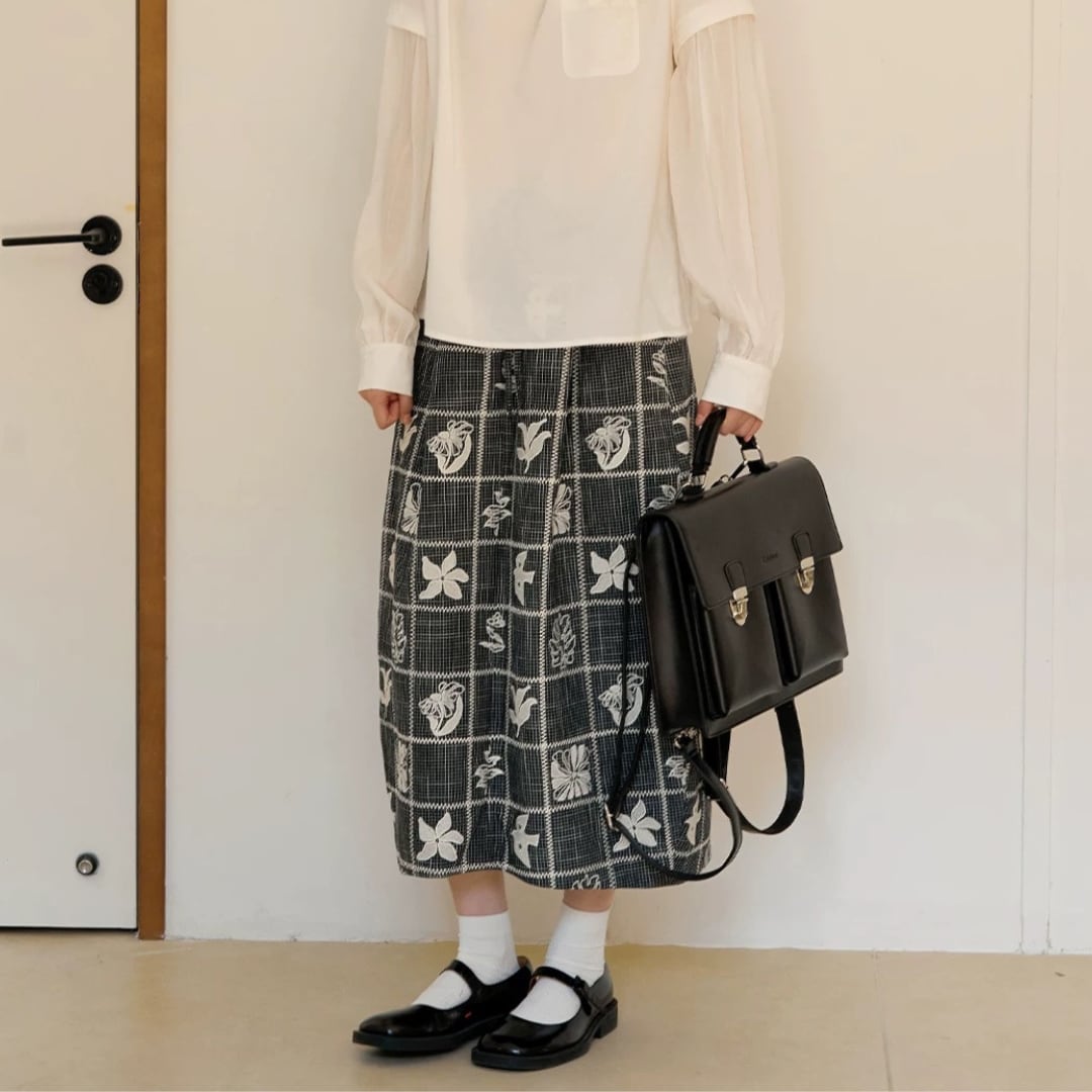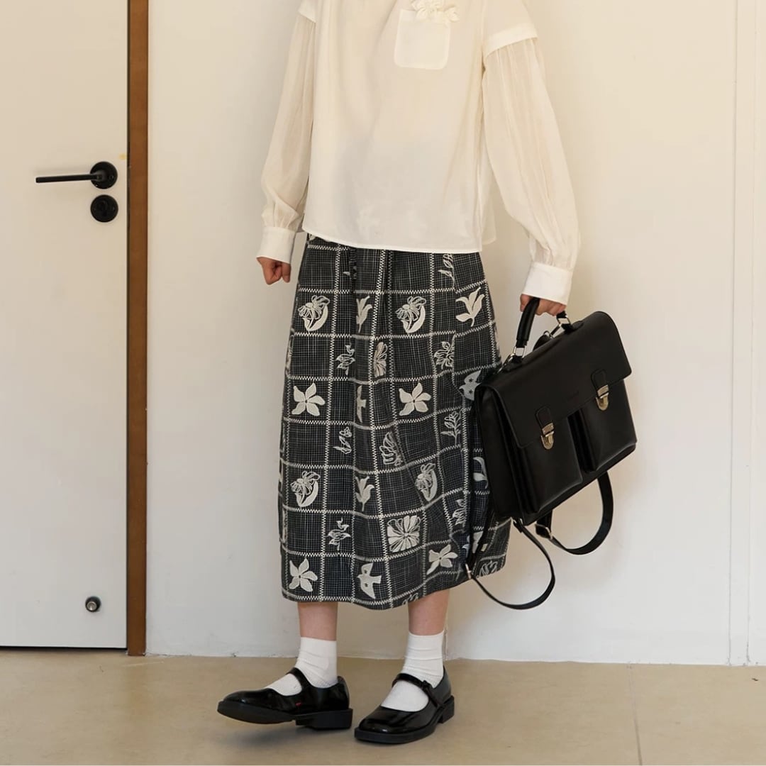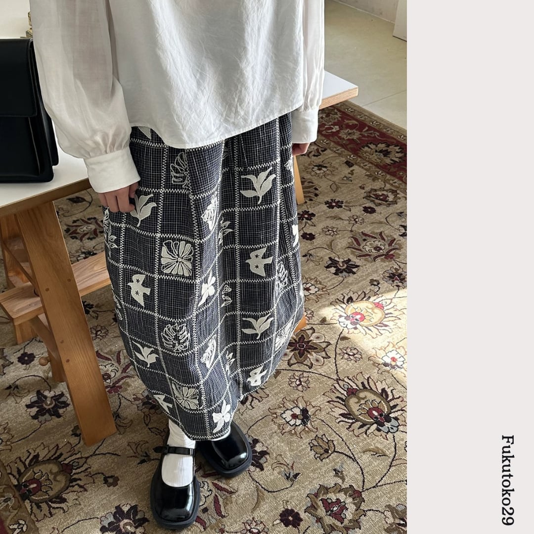 モノトーンフラワーチェックスカート F3974