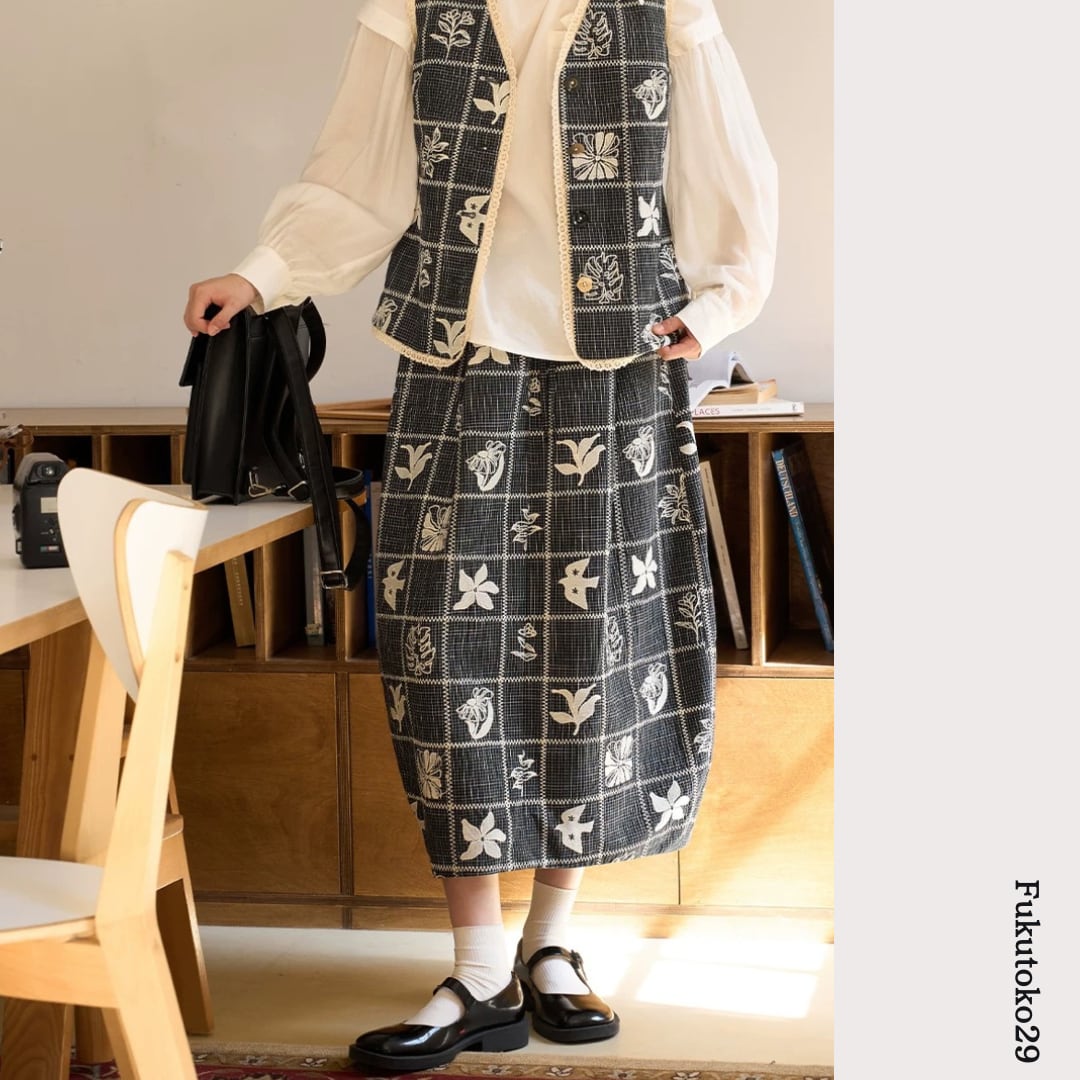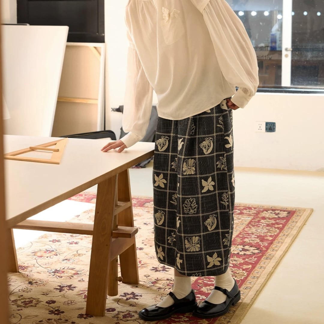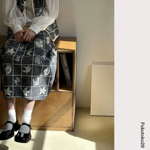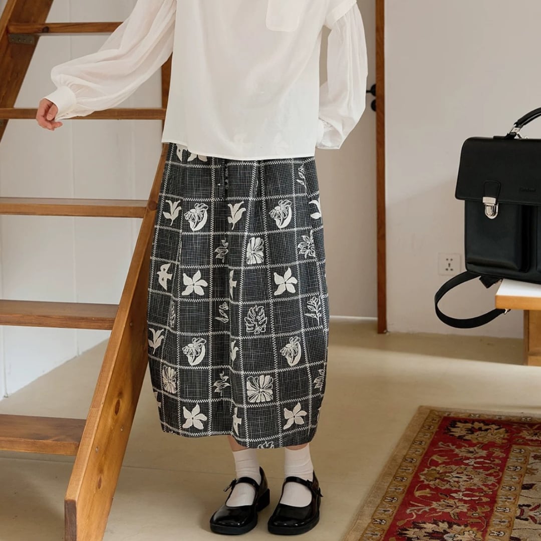 モノトーンフラワーチェックスカート F3974