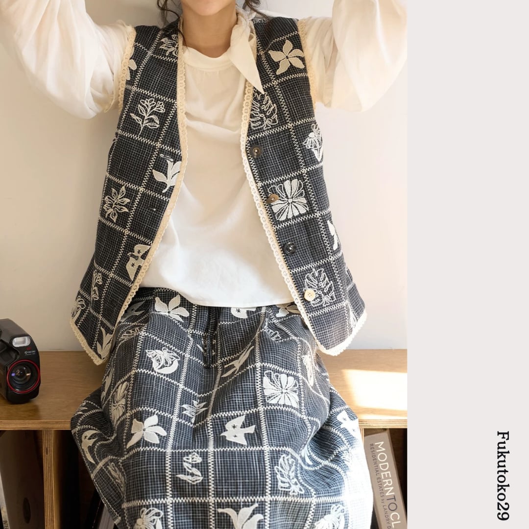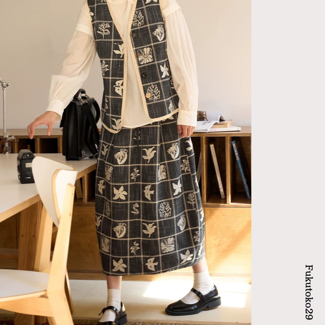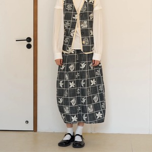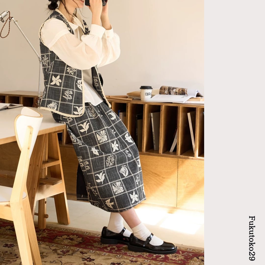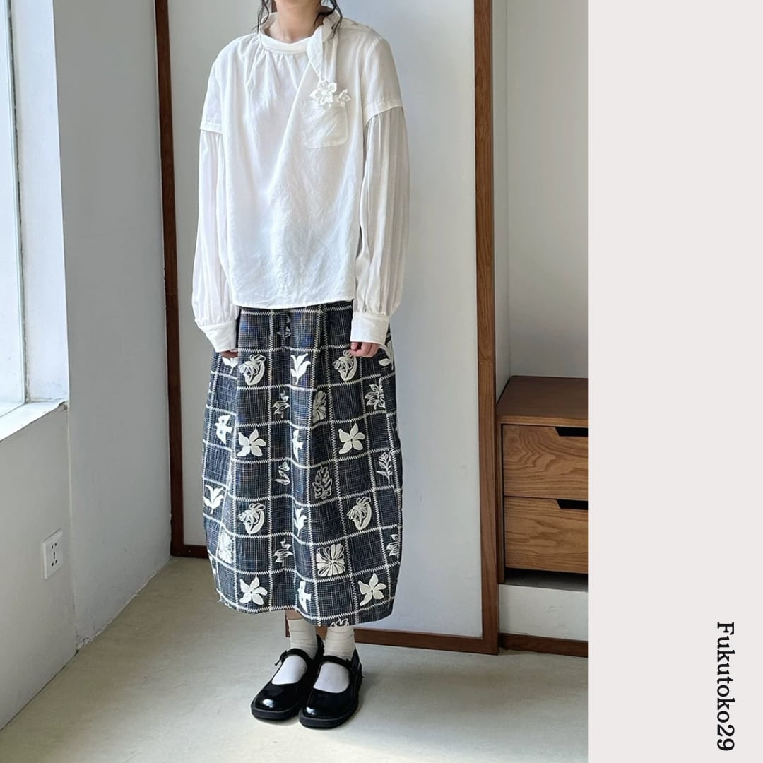モノトーンフラワーチェックスカート F3974