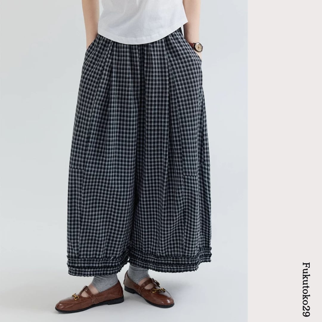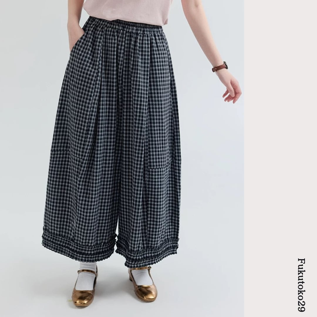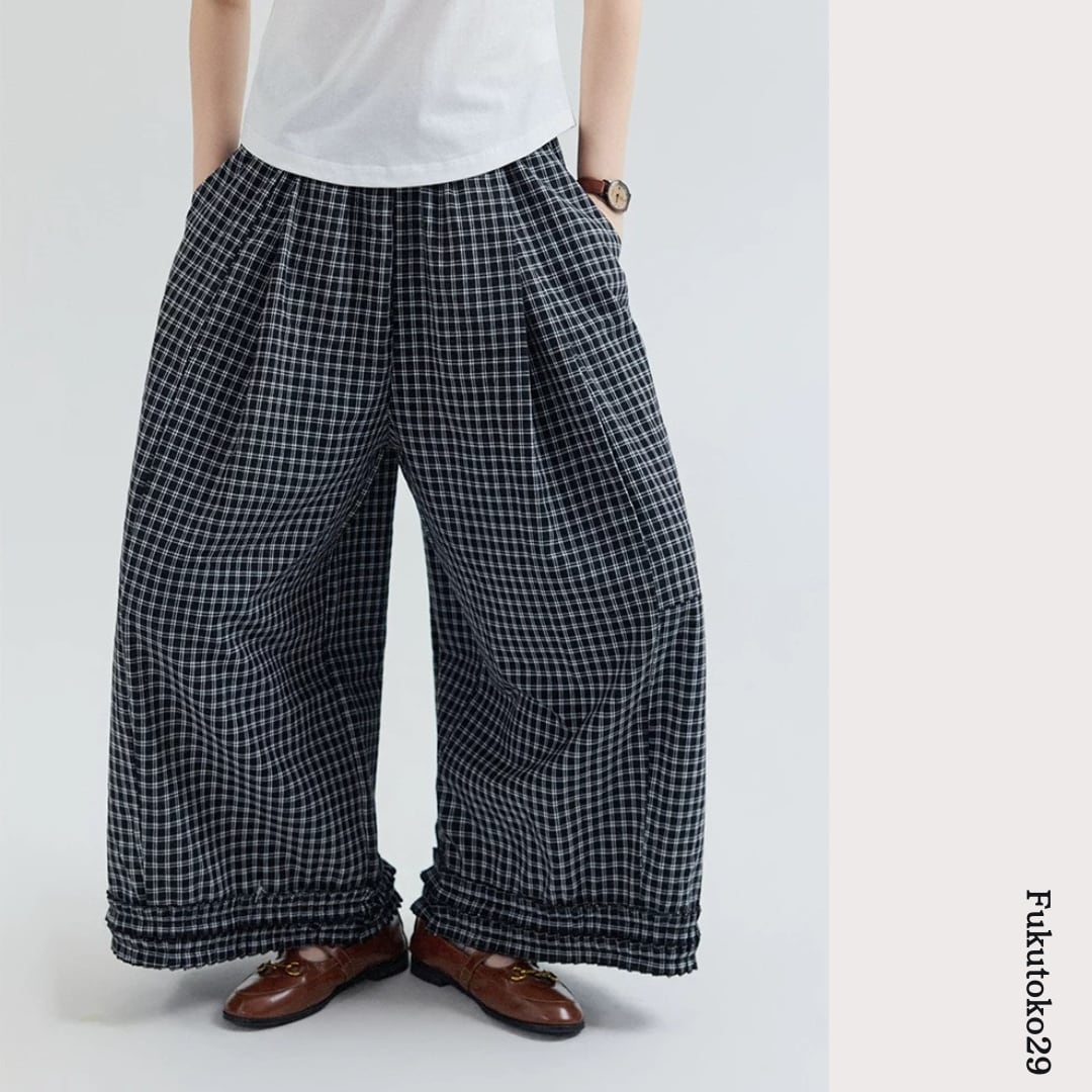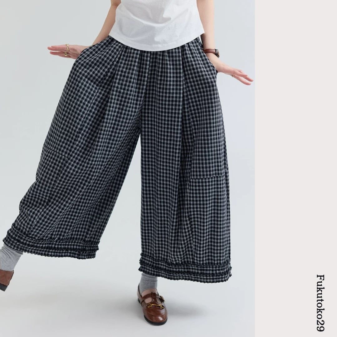 チェック柄ワイドパンツ F3984