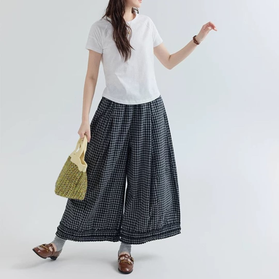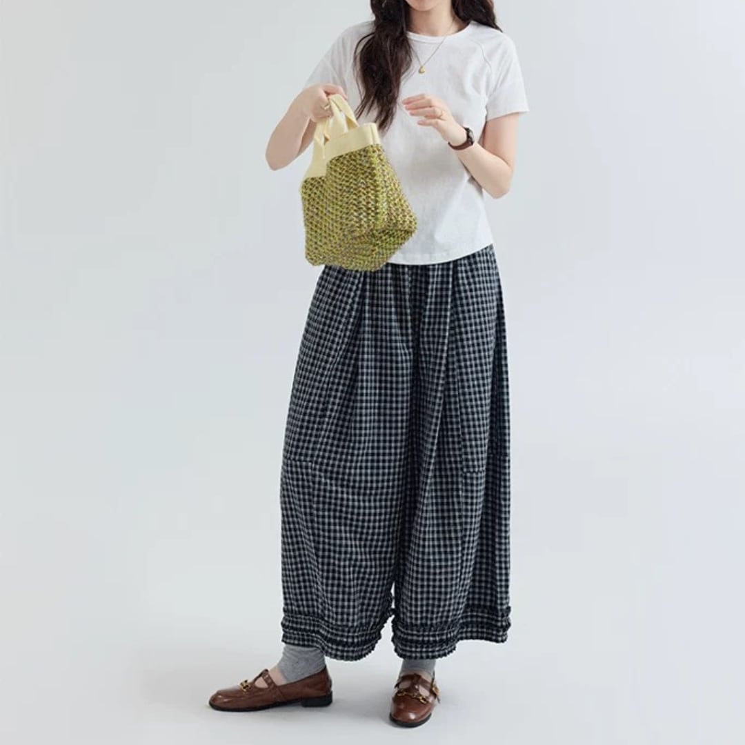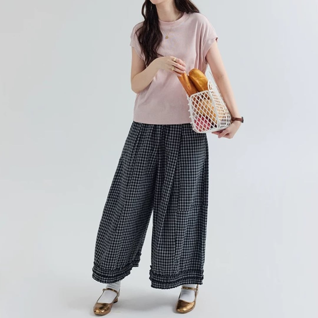 チェック柄ワイドパンツ F3984