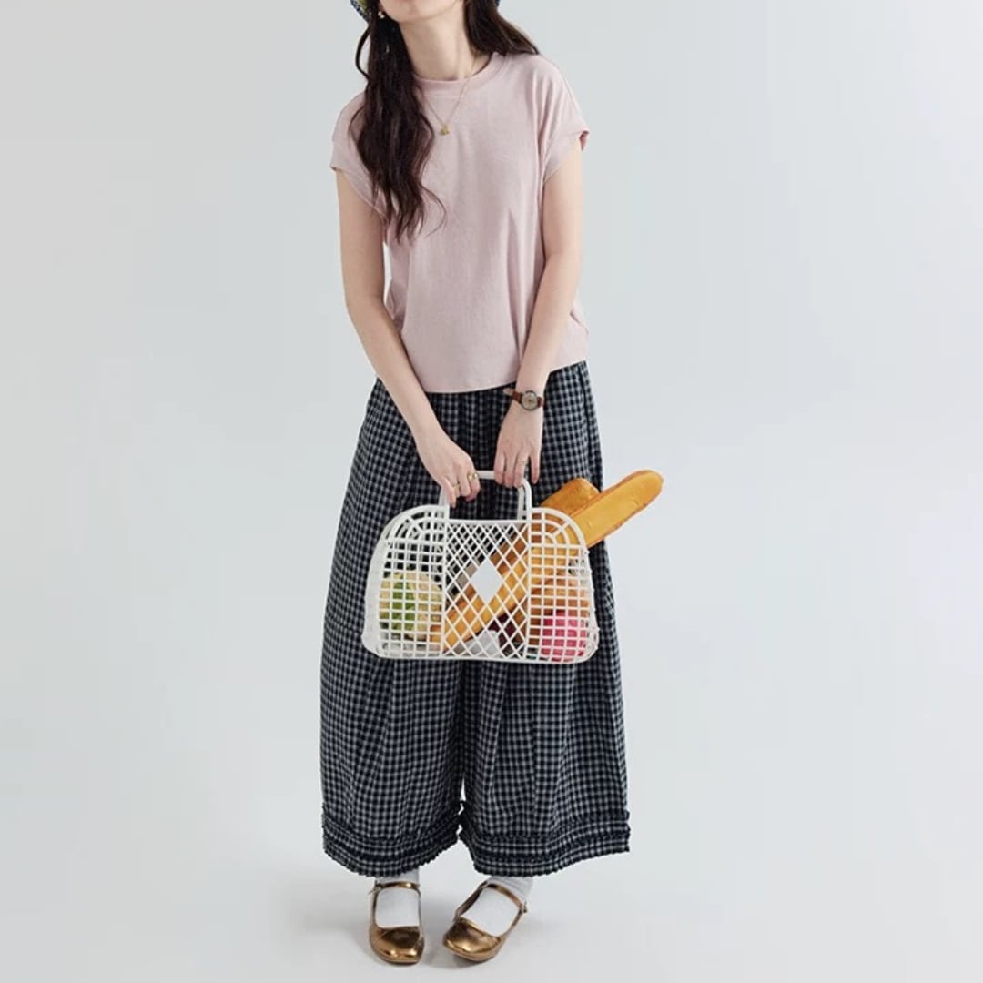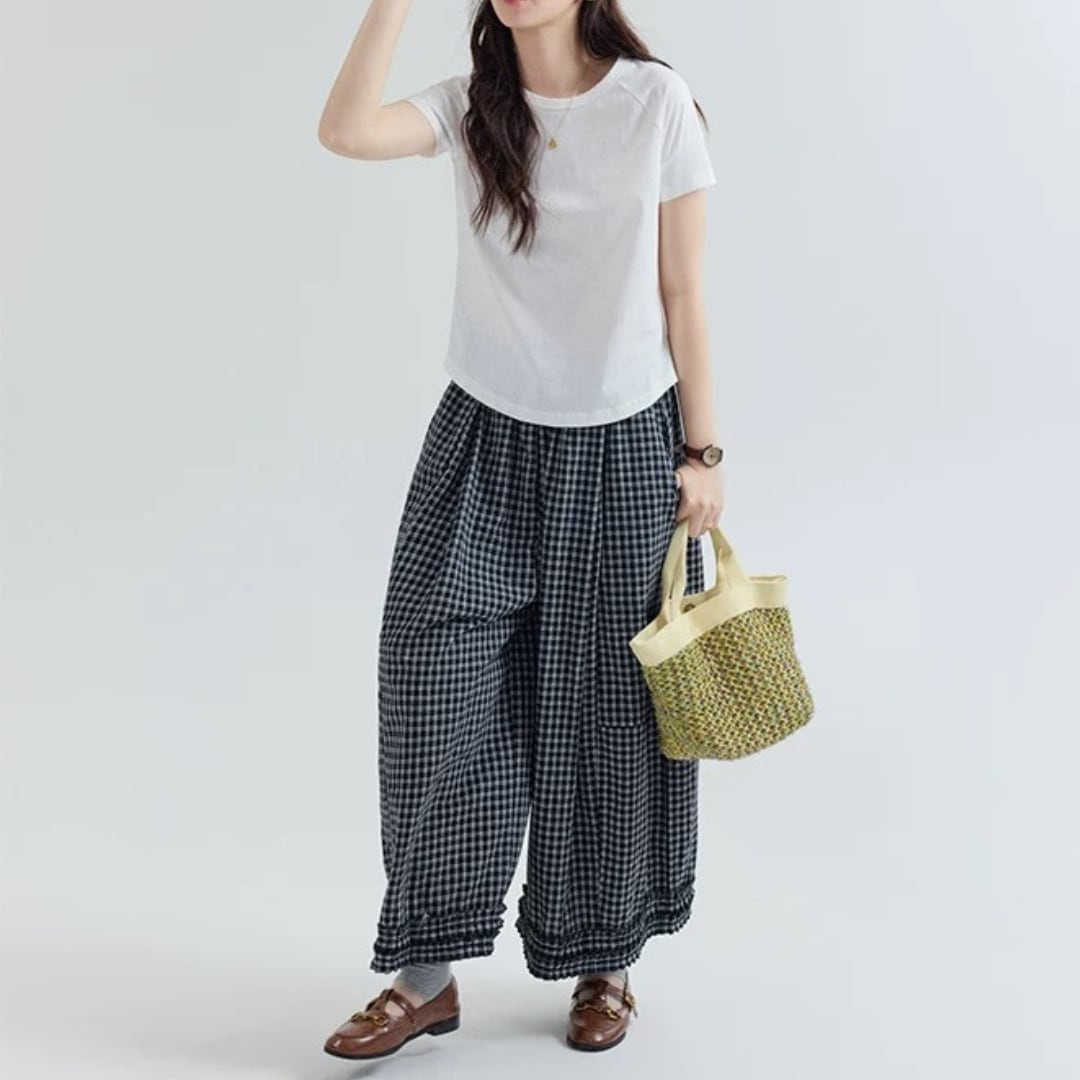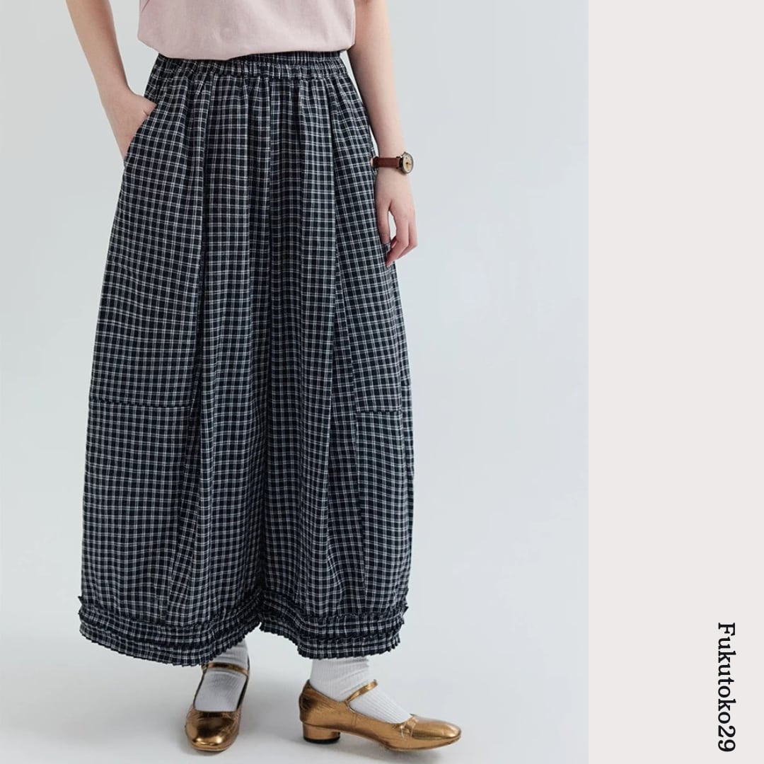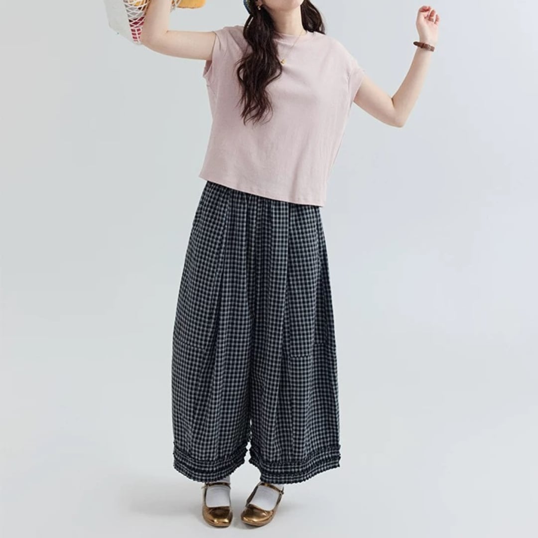 チェック柄ワイドパンツ F3984