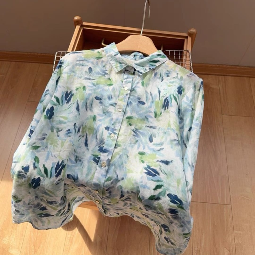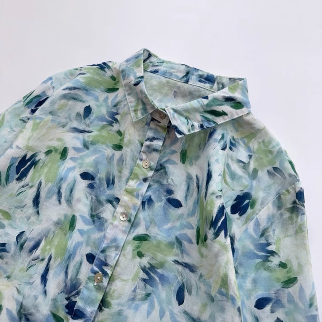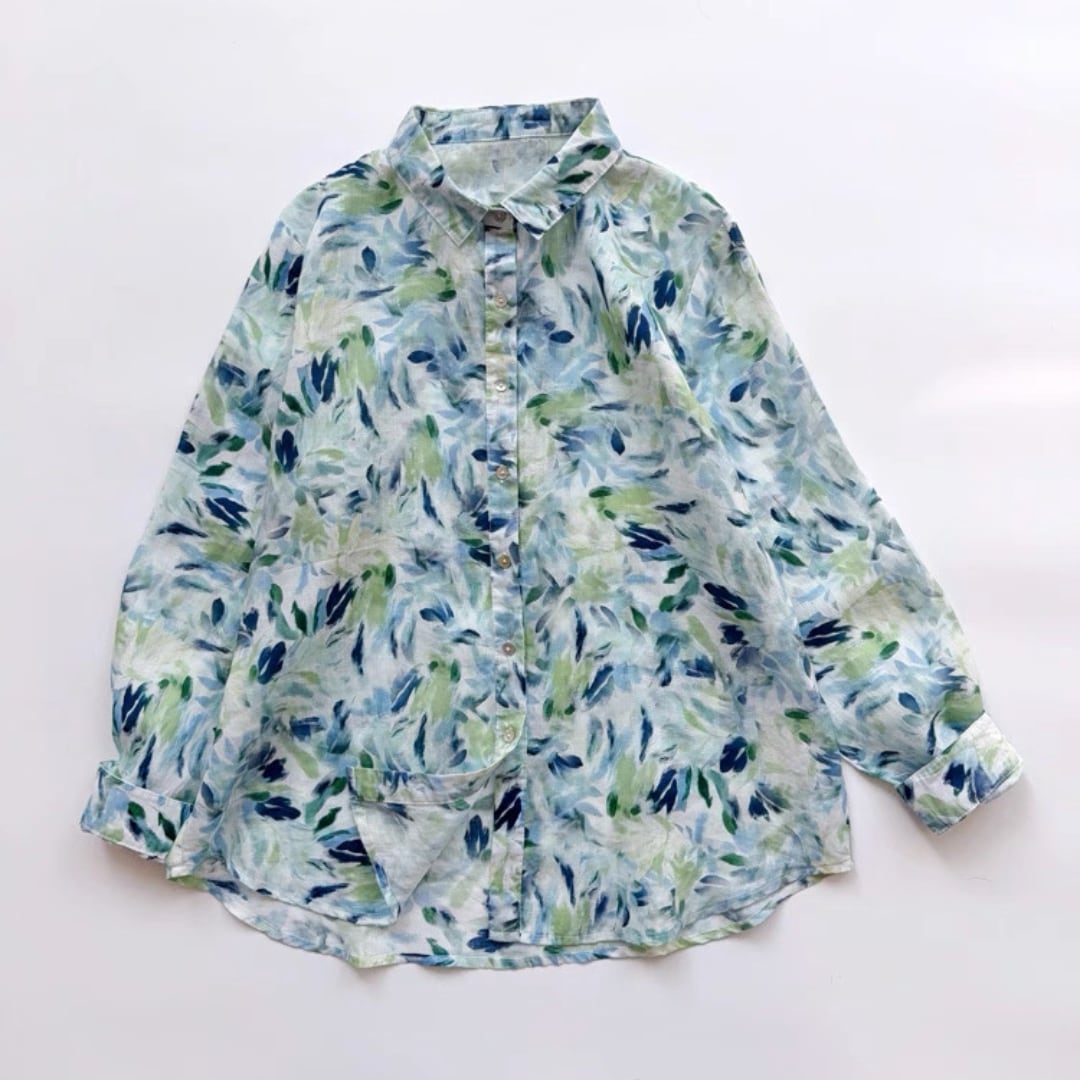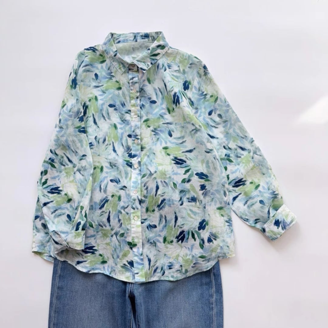 水彩リーフ柄ブラウス F3985