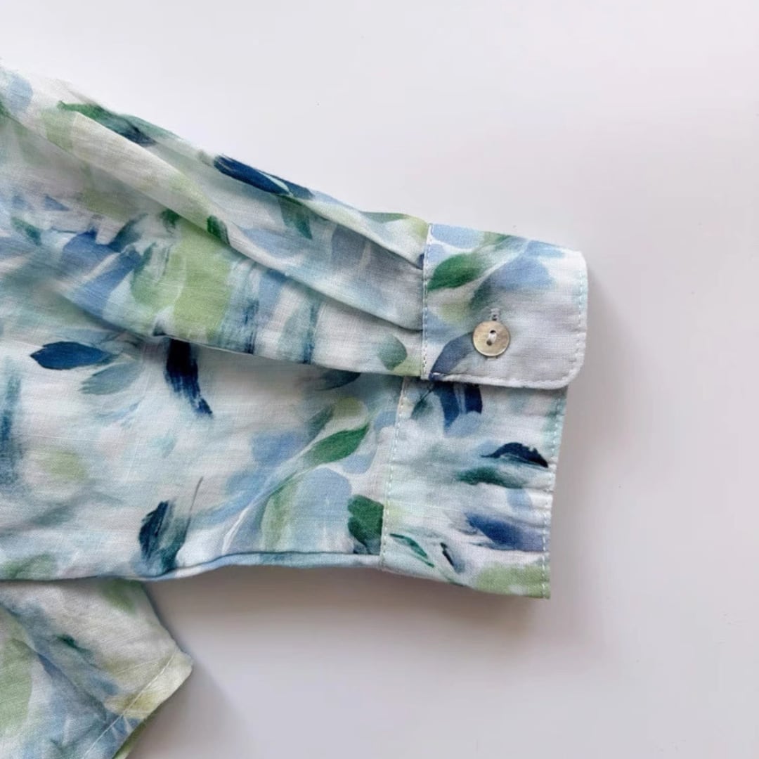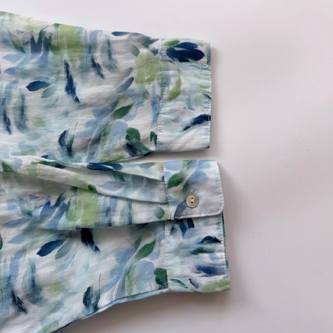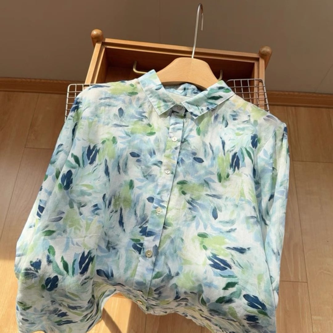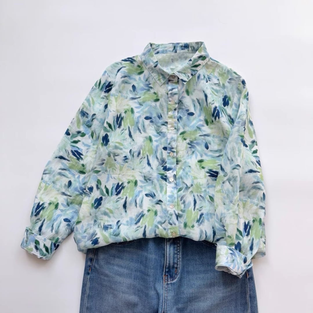水彩リーフ柄ブラウス F3985
