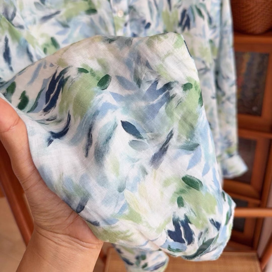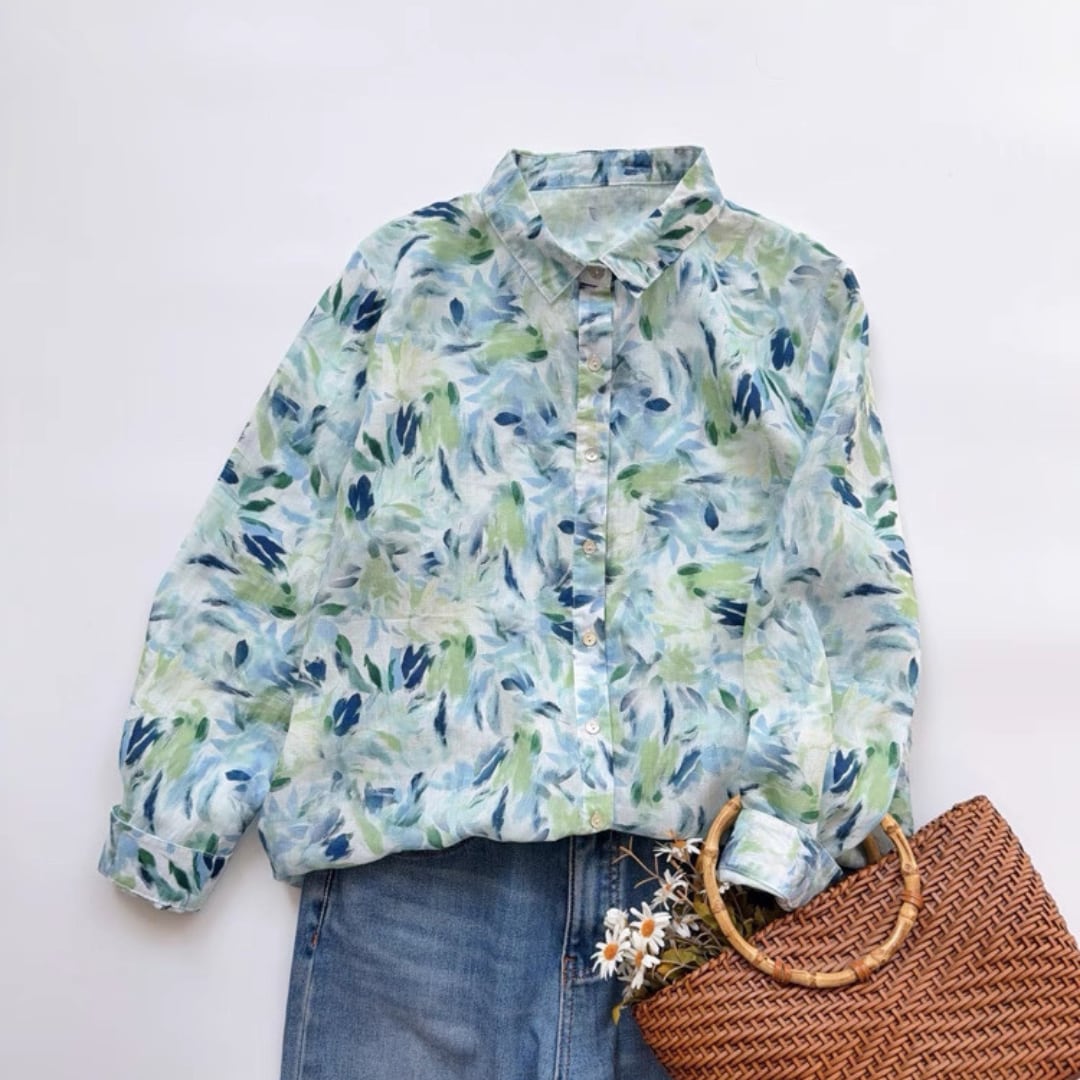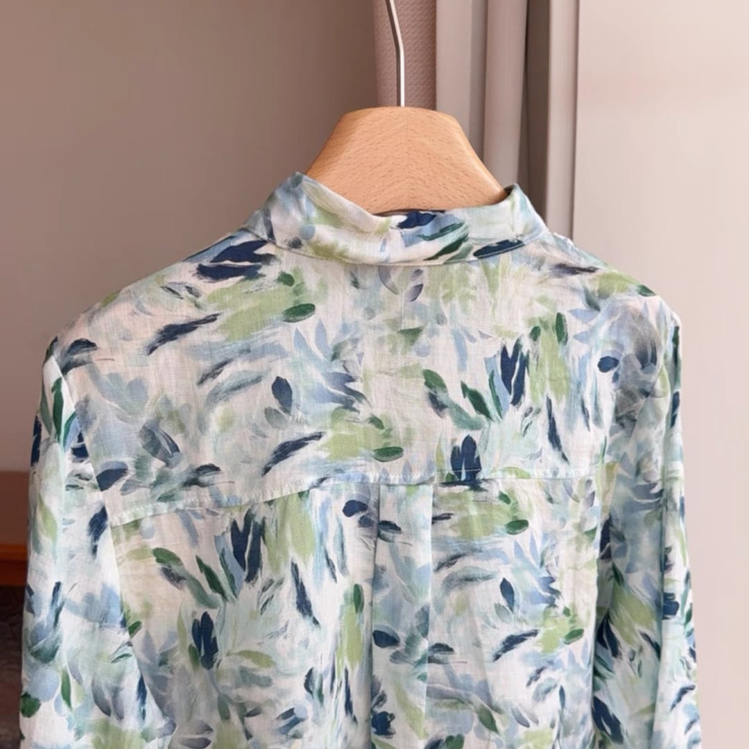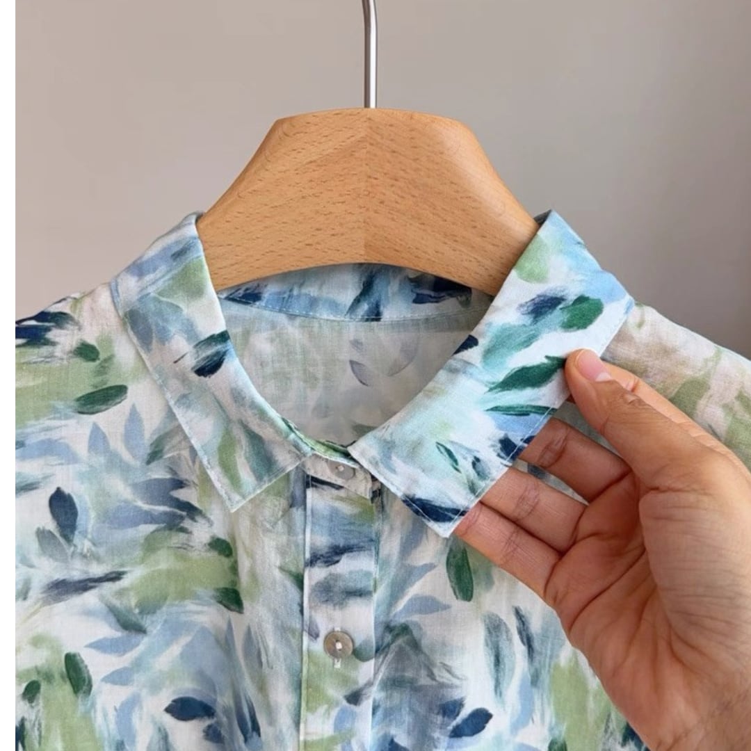 水彩リーフ柄ブラウス F3985