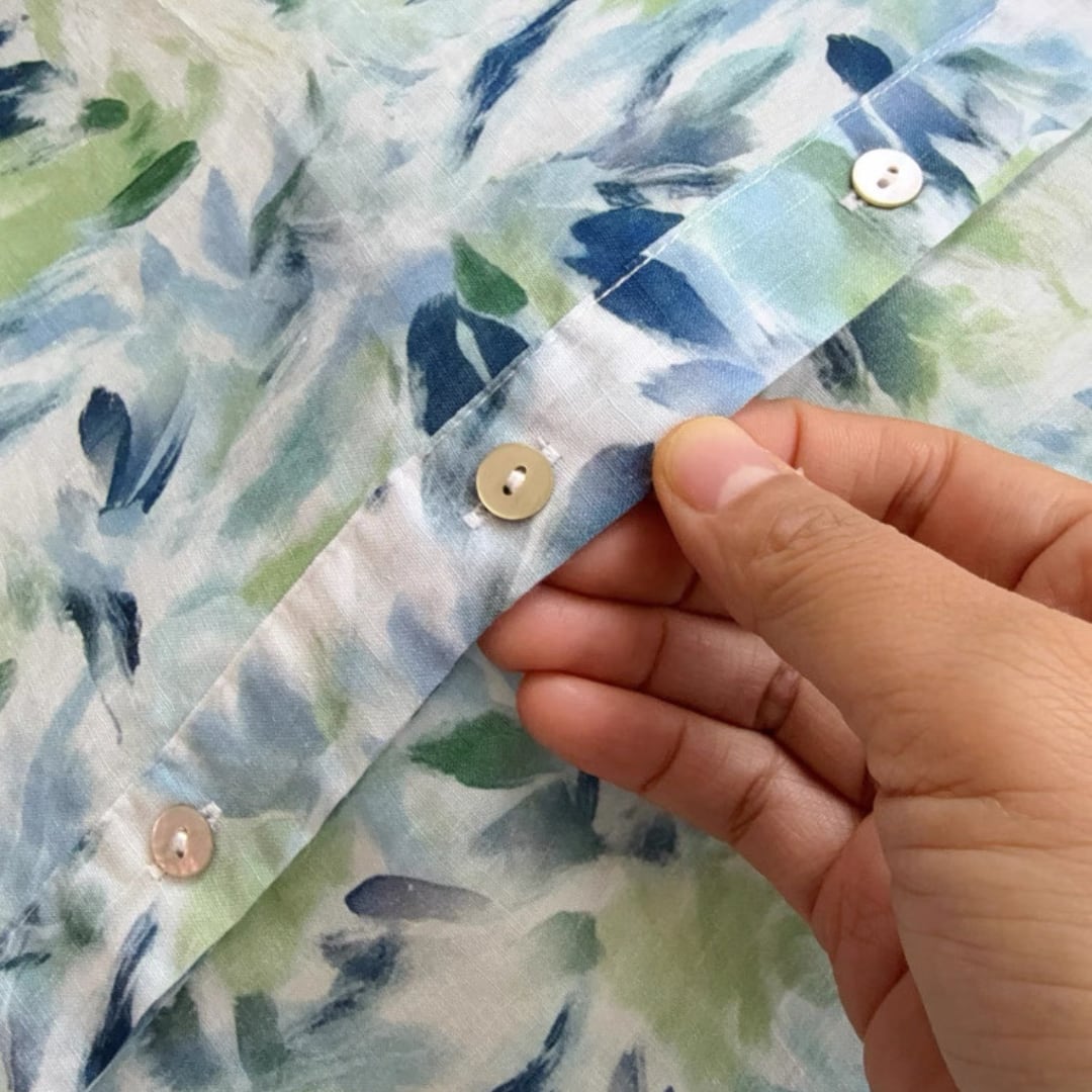 素材の特性上、少し透け感がございます。カーディガンやベストと合わせてご着用くださいませ。ボタンをあけて羽織りとしても使えます。