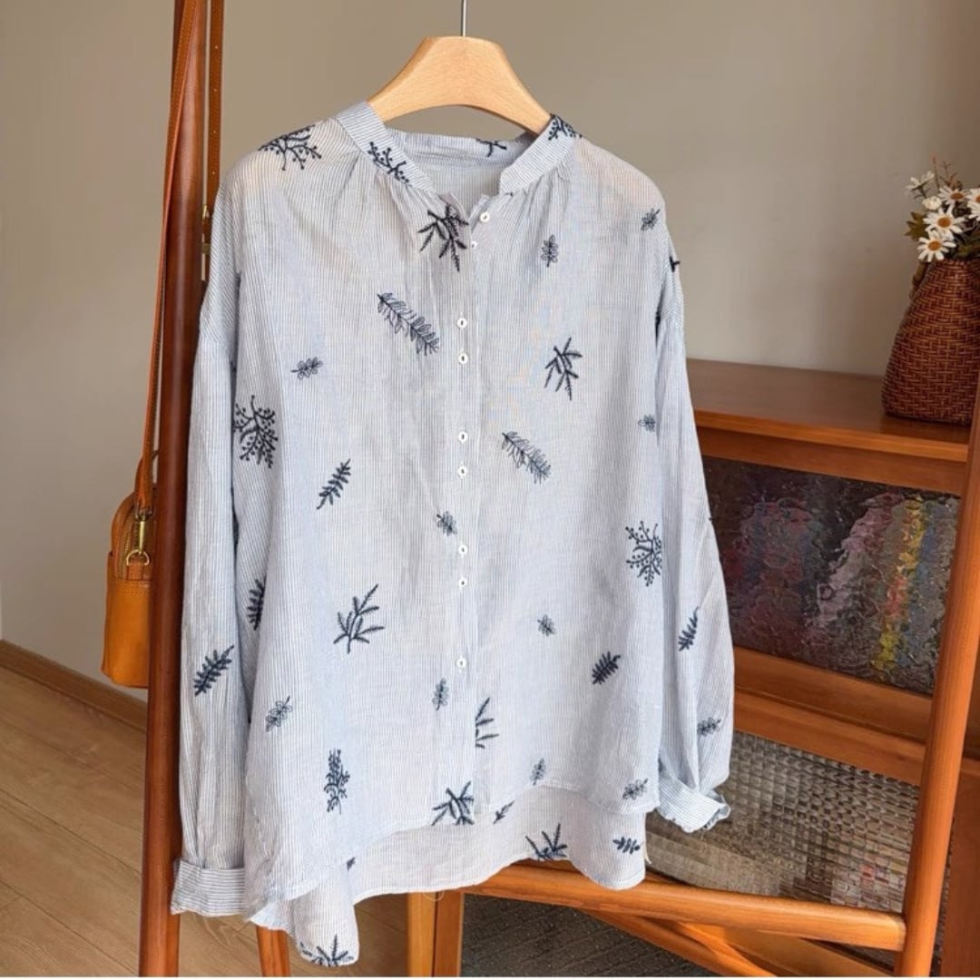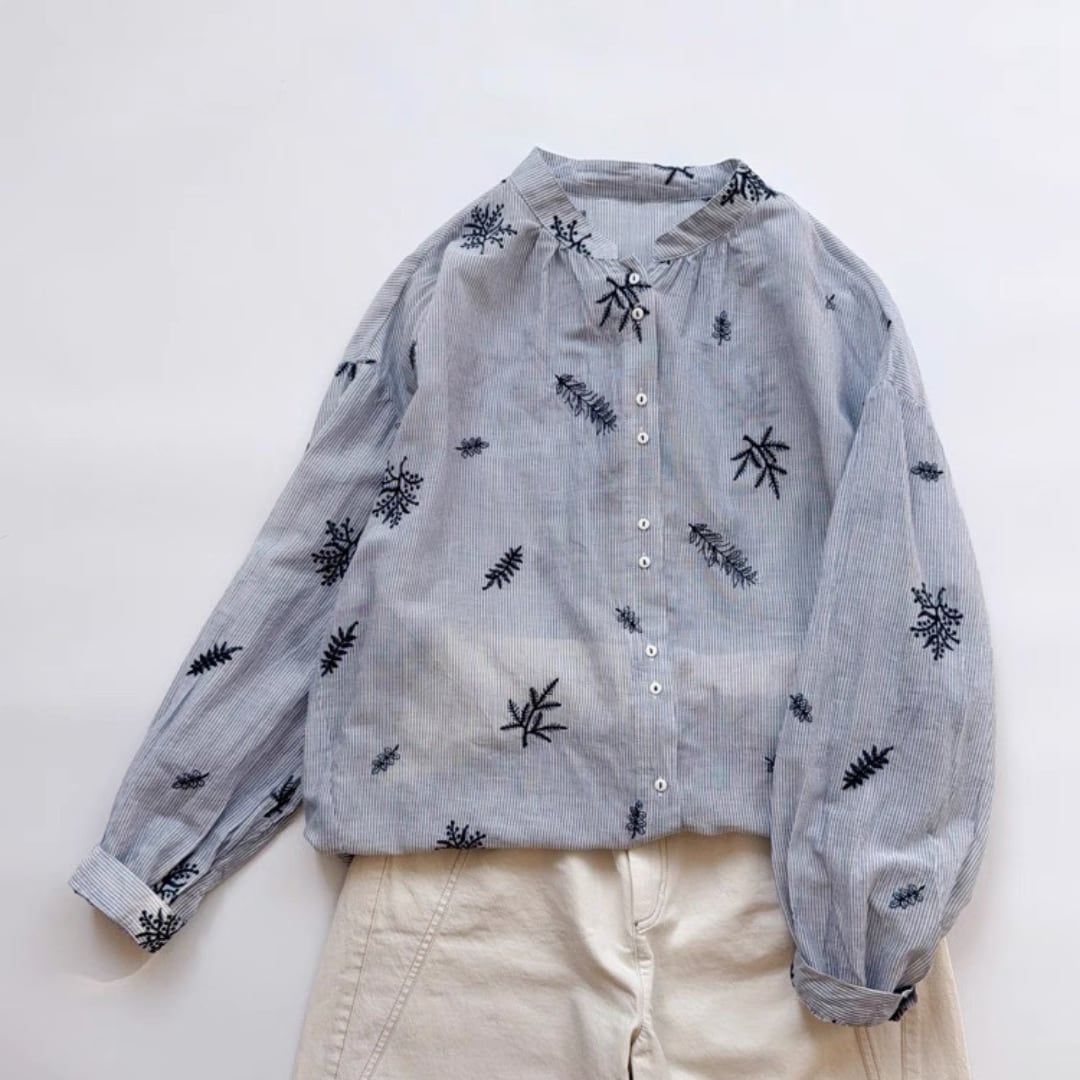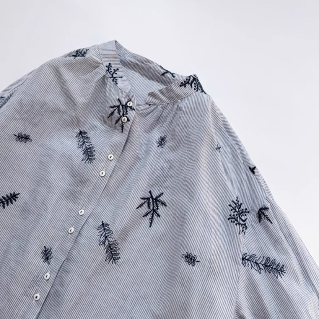 リーフ刺繍ルーズシャツ F3990