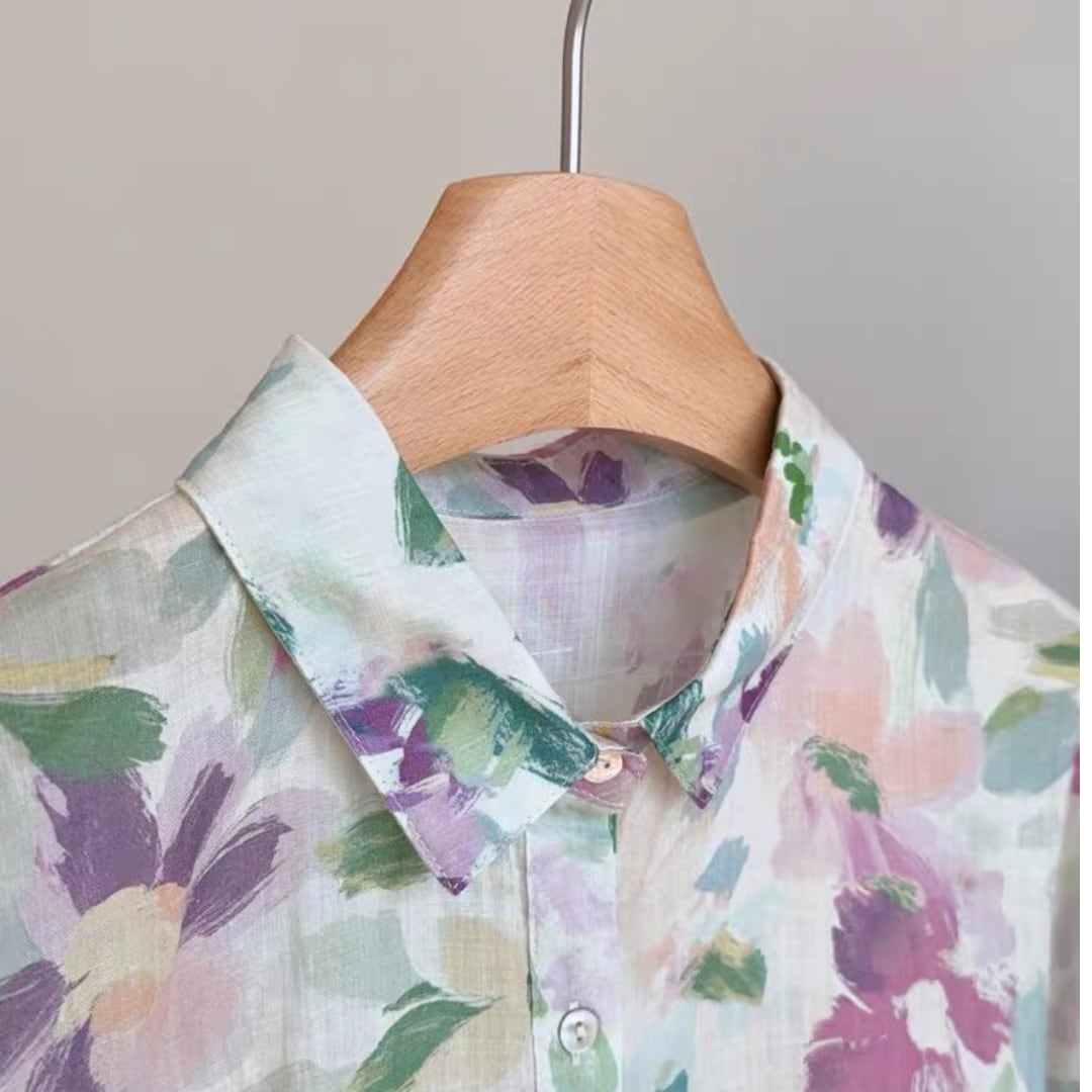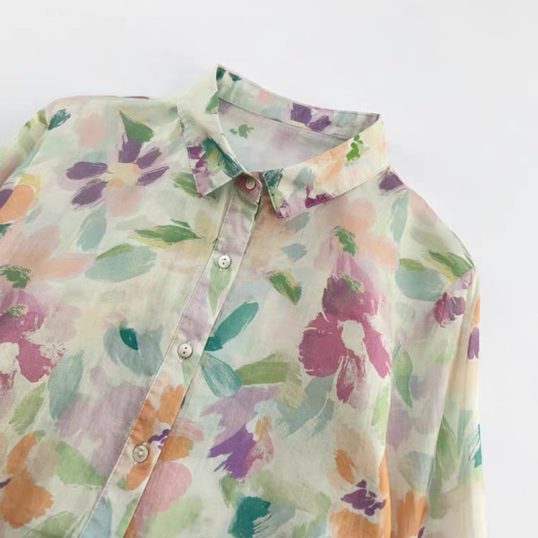 淡彩フラワーシャツ F3998