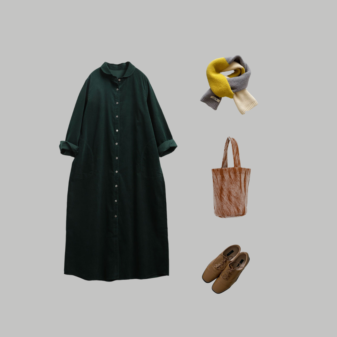 コーデュロイシャツワンピース F3070