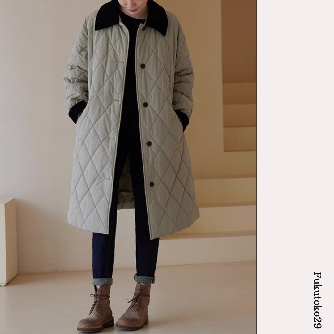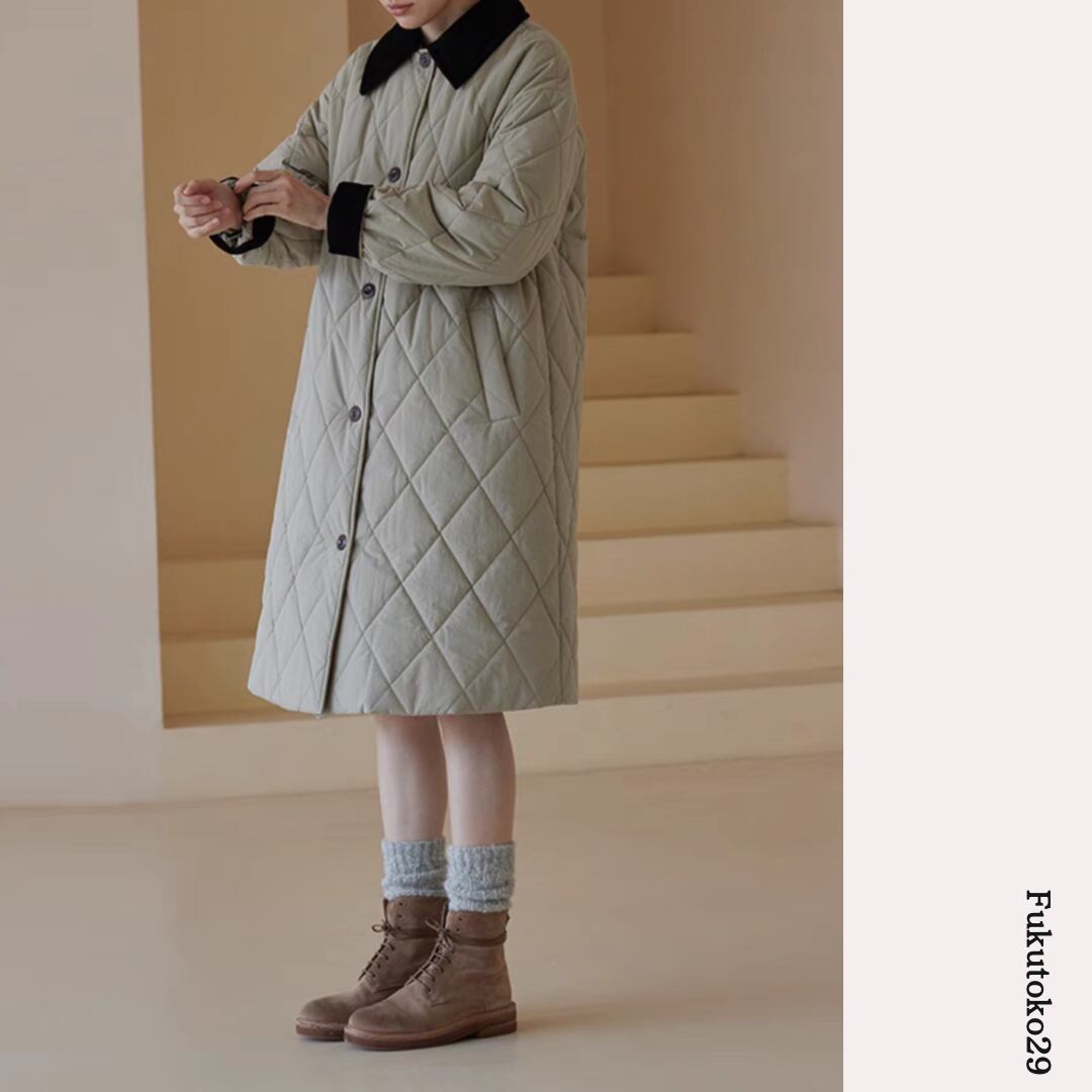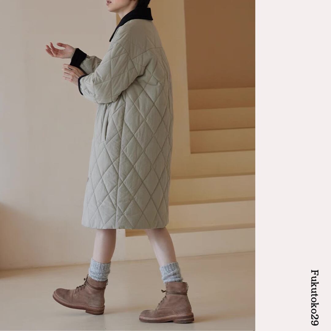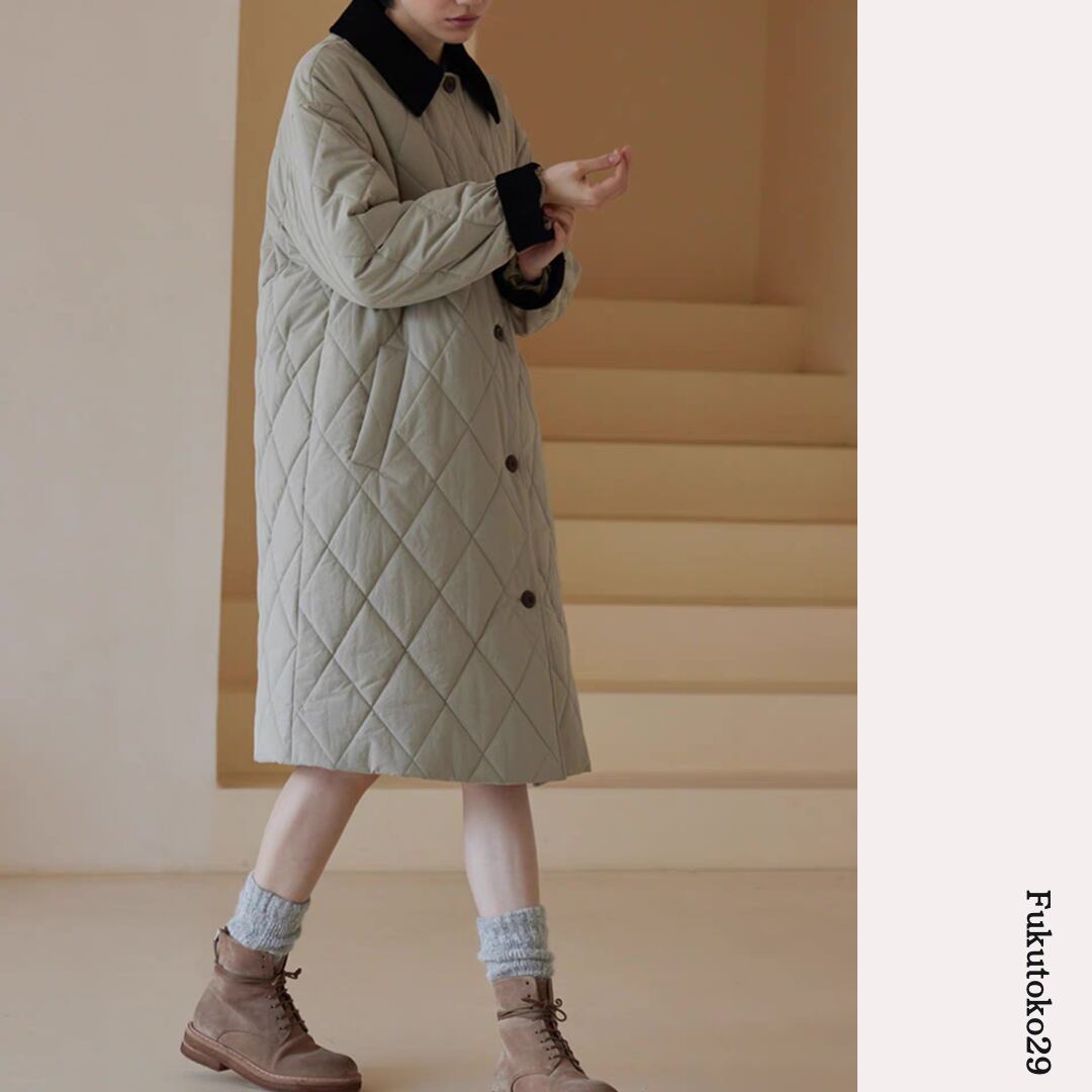 キルティングロングコート F3287