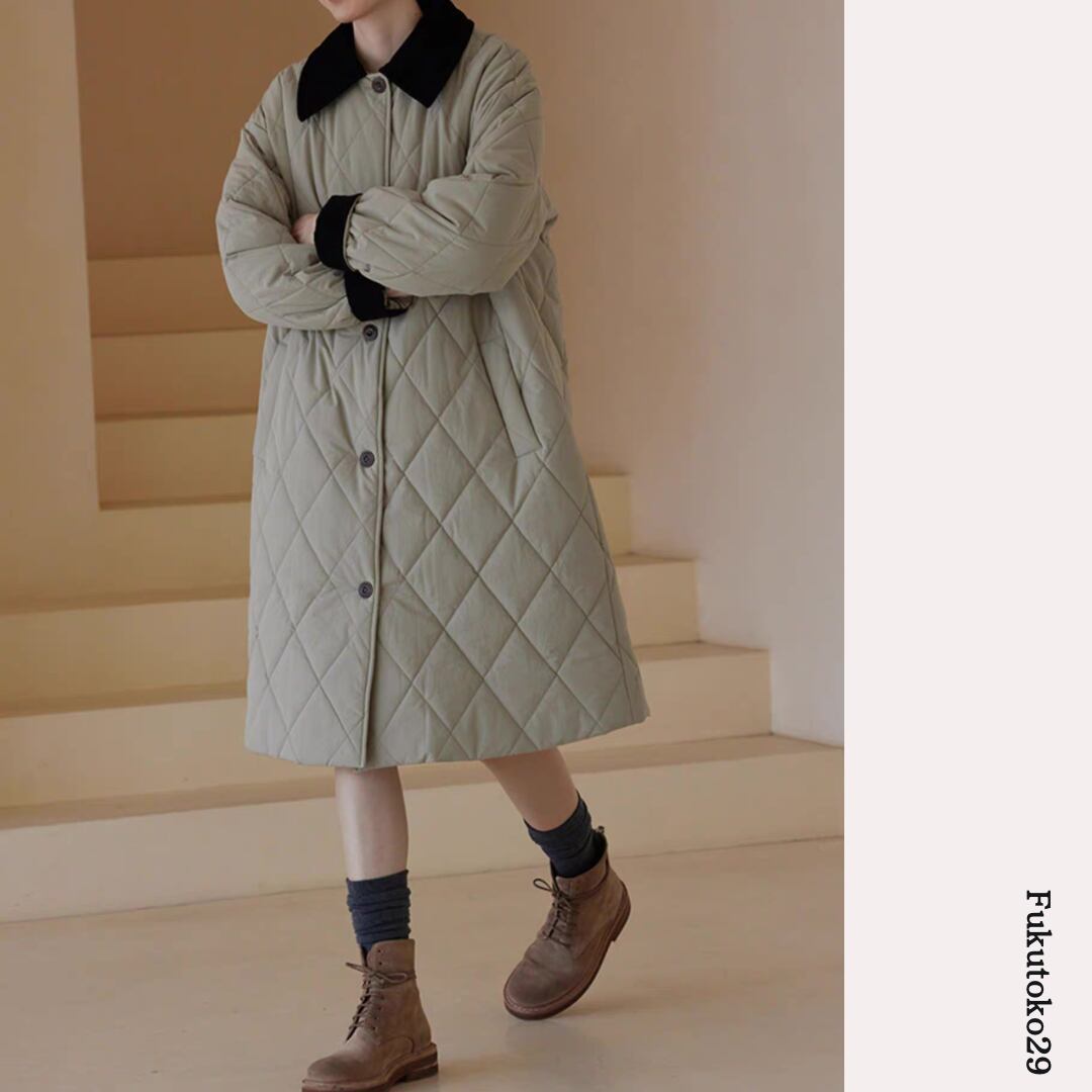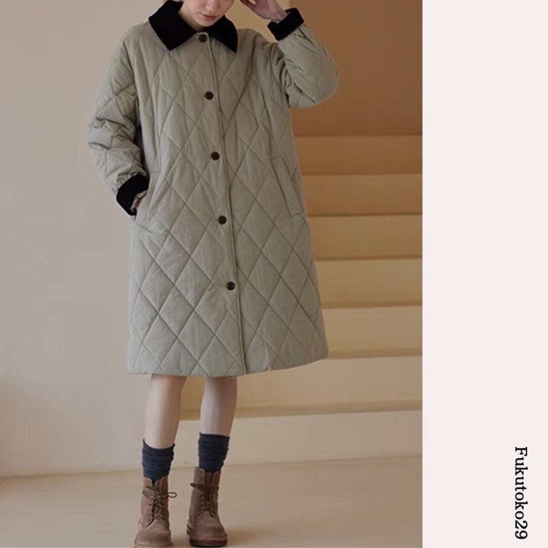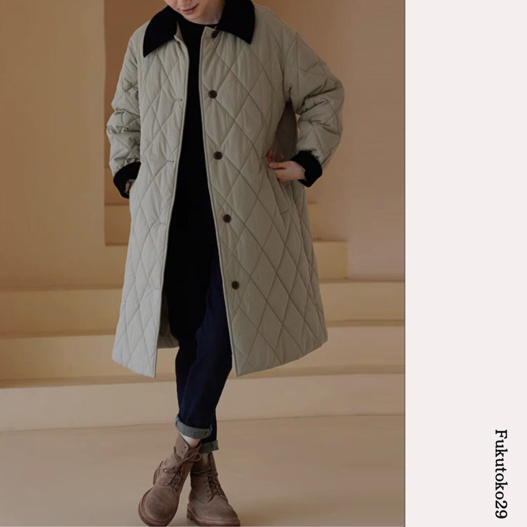 キルティングロングコート F3287