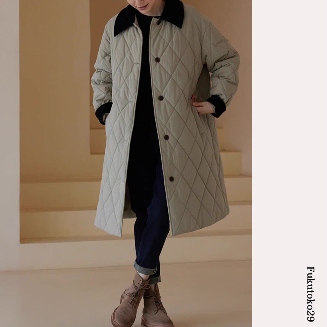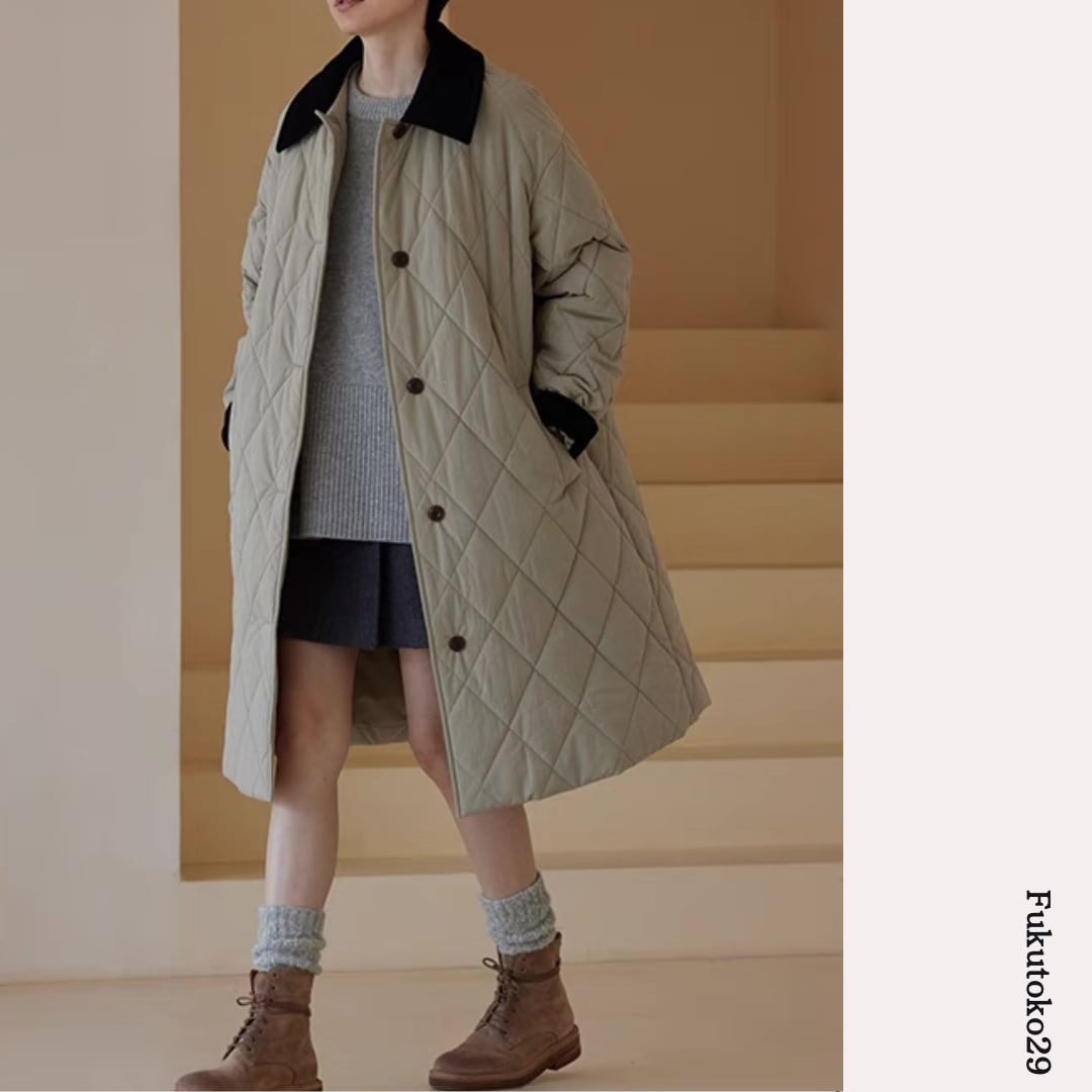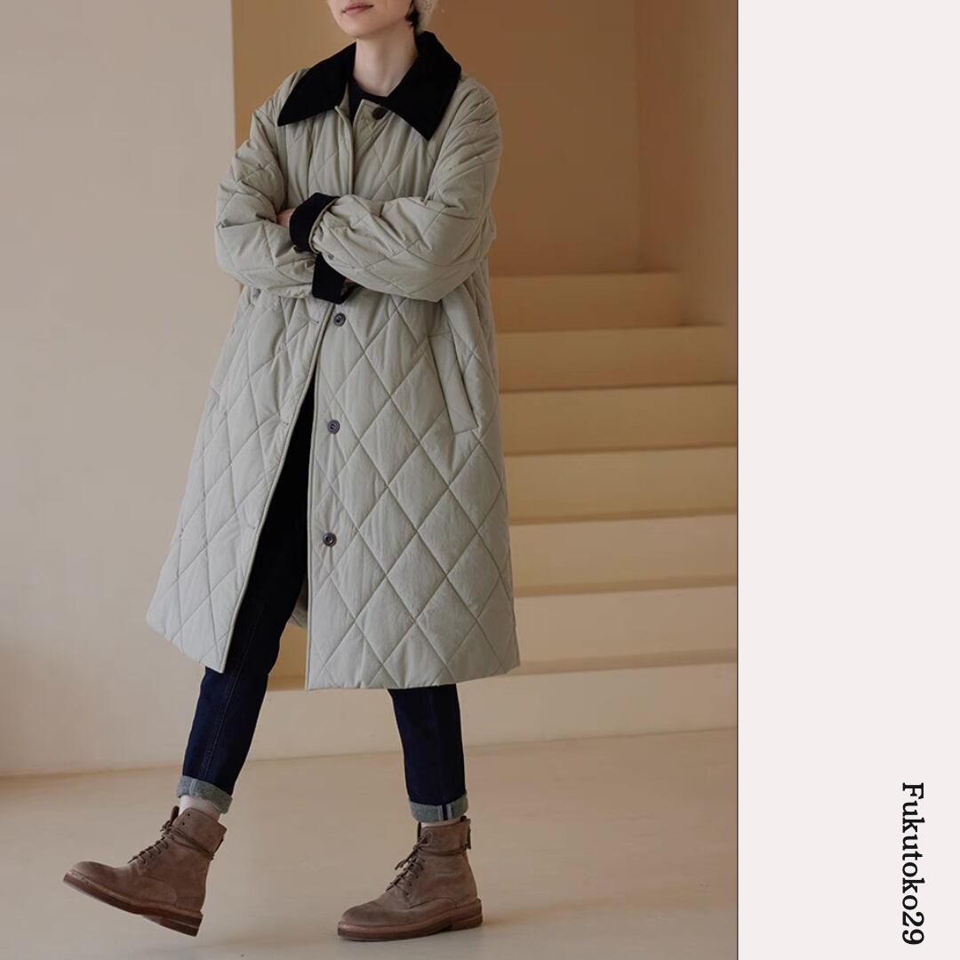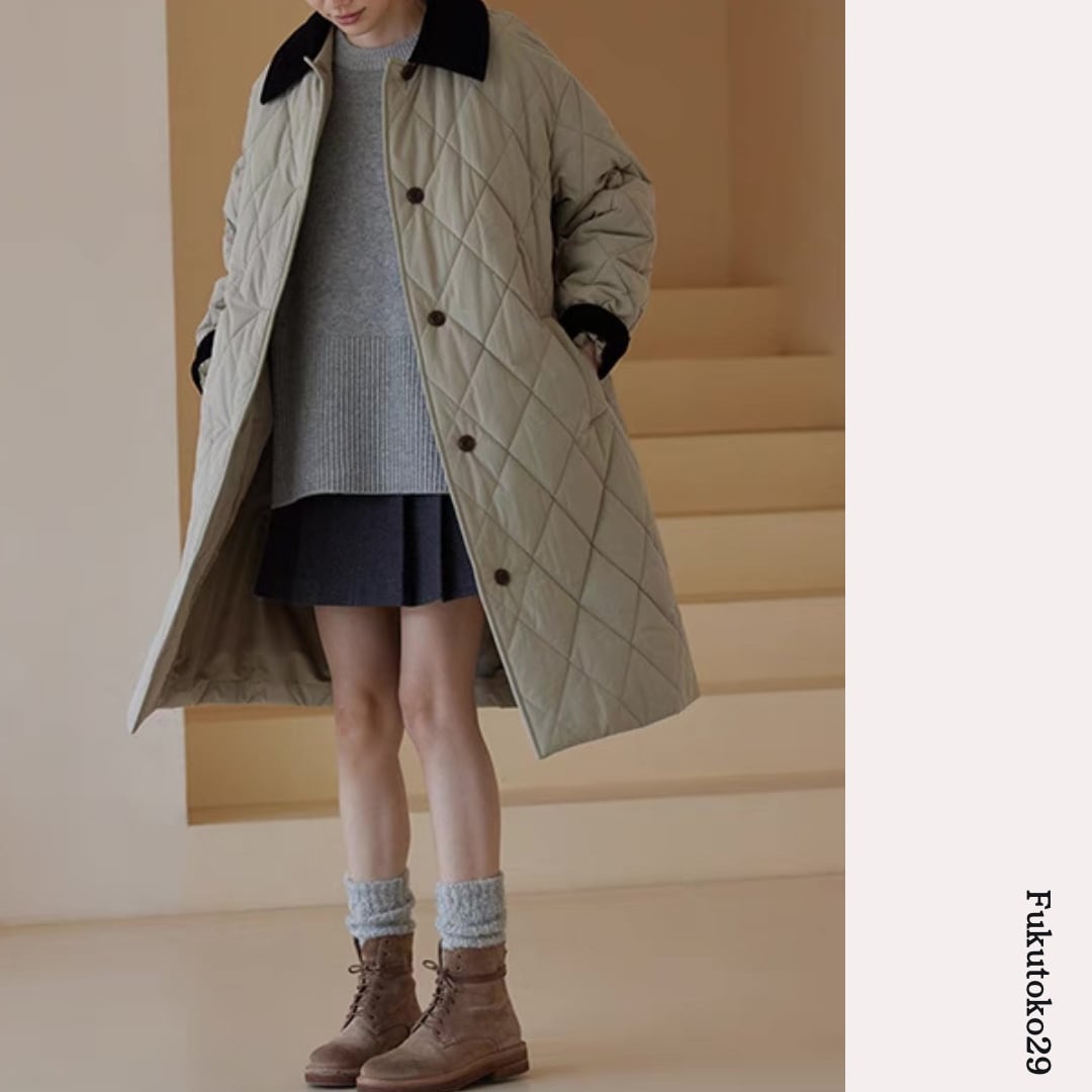 キルティングロングコート F3287